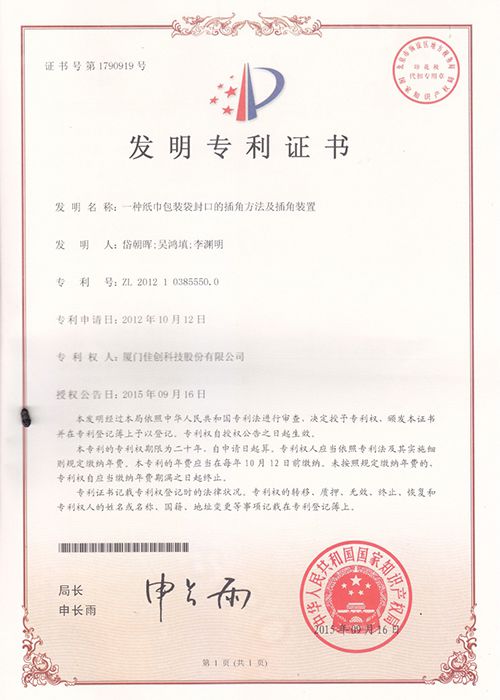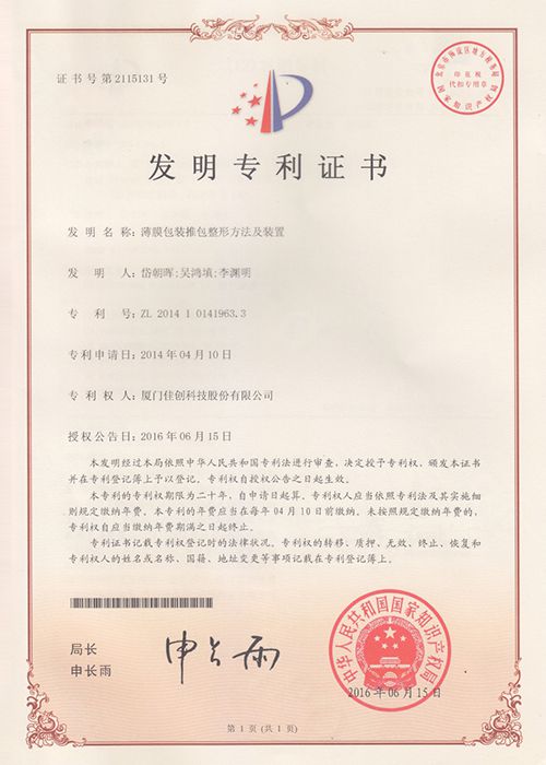 كما أنه ومنذ تأسيس شركة Gachn، فقد أبدعت في التطوير التقني لمجال معدات التعبئة والتغليف، وقد حصلت على 11 براءة اختراع وطنية و 26 براءة اختراع لنماذج المنفعة و 4 براءات اختراع للتصميم.