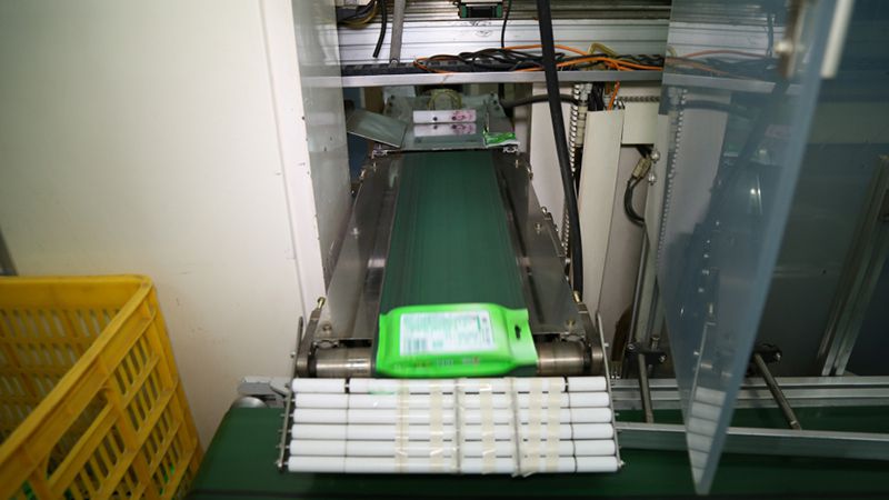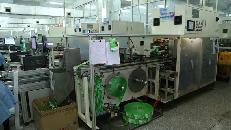 يقوم خط تغليف وختم المناديل المبللة بتعبئة المناديل المبللة المكدسة أحادية القطعة في أكياس ثم تغلق الأكياس (تتم عملية لحام الأكياس). كما يمكنها أيضًا إنتاج أكياس قبل التعبئة من مادة تغليف من فيلم مطبوع. كما تقوم هذه الماكينة بتغيير مواصفات التغليف بسرعة لسهولة التشغيل.
